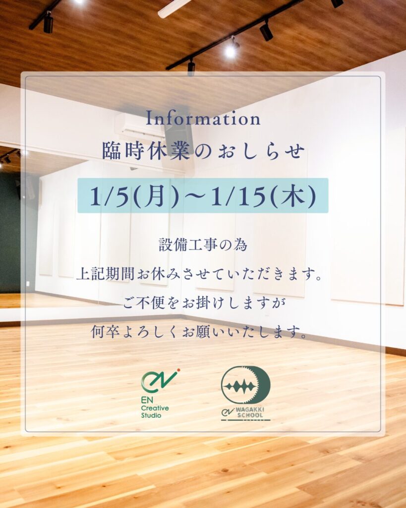 いつも EN和楽器スクール・EN Creative Studio をご利用いただき、ありがとうございます!